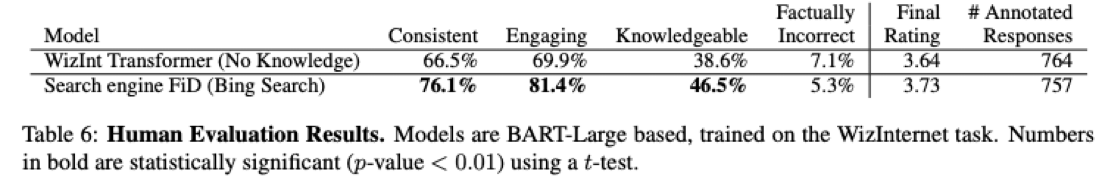 -. This paper Researchers porpose an approach that learn to internet search query based on the context and then conditions on the search results to finally generate a response.