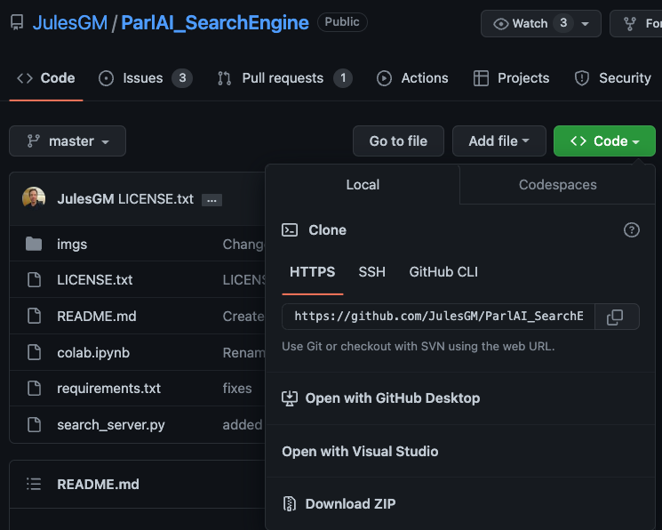 git clone https://github.com/JulesGM/ParlAI_SearchEngine.git