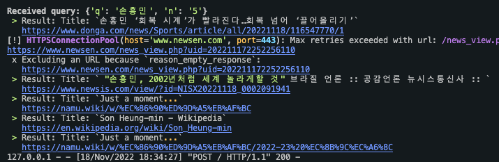curl -X POST "http://0.0.0.0:8080" -d "q=손흥민&n=5"