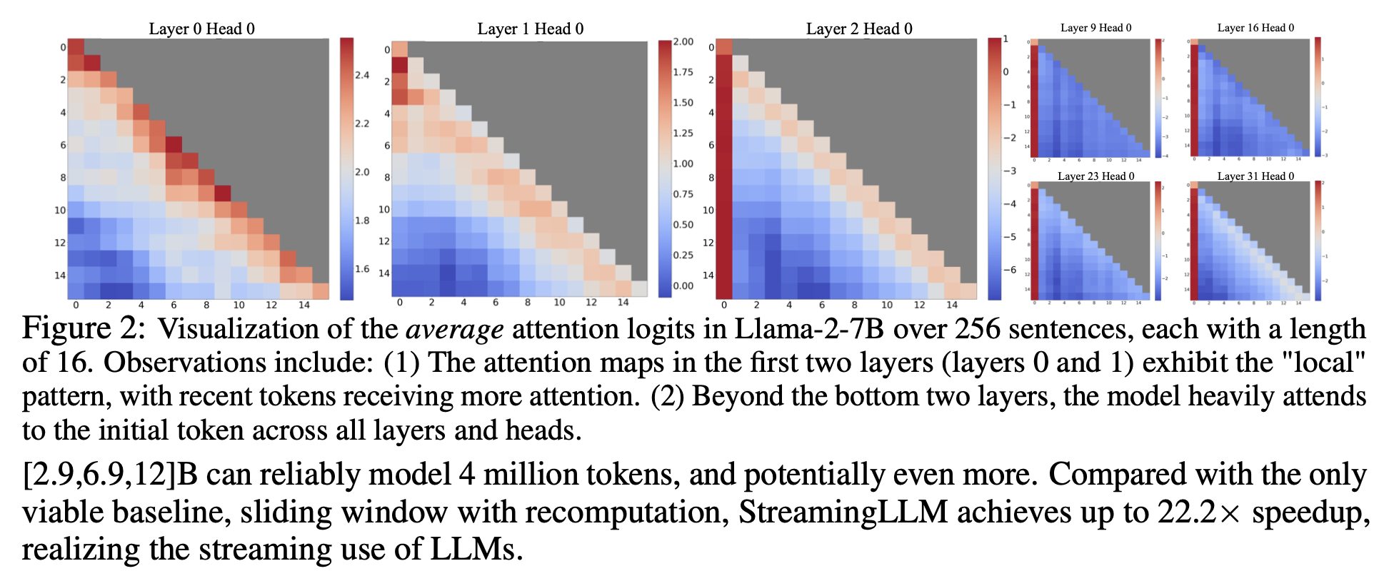 daje 2023. 10. 18. 17:15Attention Sinks로 더 많이 소개되고 있는 논문 : Efficient Streaming Language Models with Attention Sinks(feat. text of infinite length without fine-tuning)에 대해서 오늘은 한번 알아보고자 해요. 어떤 문제를 해결하고 싶었고, 어떻게 아이디어 발견하였고, 수식과 코드까지 어떻게 연결되었는지 한 큐에 설명드릴테니 잘 따라오셔요!