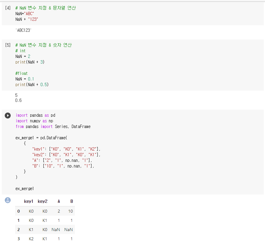 위 표에서 설명드린 것처럼, python에서는 NaN, Na, Null이 모두 같은 의미로 사용됩니다.