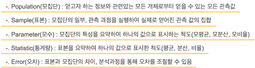 통계를 공부하다보면 생각보다 많은 용어들이 나옵니다.