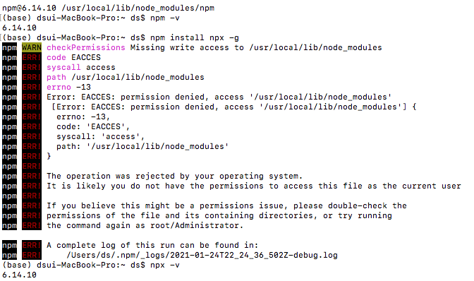 아래 에러의 경우, 이미 npx가 설치되어 발생된 에러입니다.